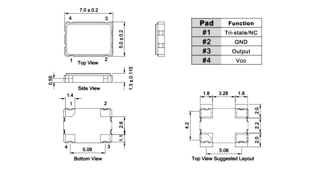 | Annual aging rate | ±3ppm/yearMax | Model number | 7.0x 5.0 x1.3 |