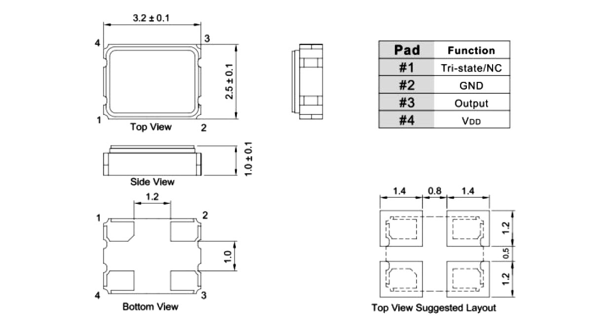 | Annual aging rate | ±3ppm/yearMax | Model number | 3.2x 2.5 x1.0 |